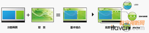 一、 版型選擇:首先確認模板的分割方式(版型),用戶可挑選自己所需版型(如圖一),或是訂制個別樣式,這部分取決因素除客戶外還包括播放器自身的一個支持方式,比如是否只支持一個視頻播放或者可以支持幾個視頻的播放。