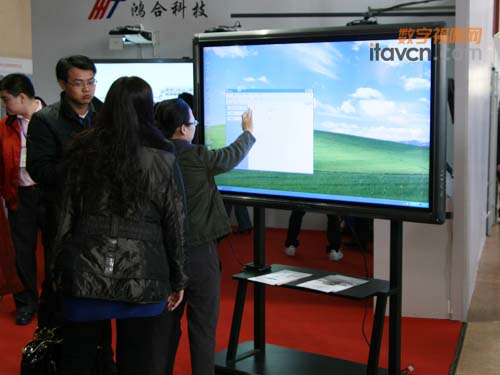 鴻合 Hitevision交互式電子白板所提供的觸摸感應尤其獨特,用戶無需配備專用筆,使用手指、教鞭等均可順利書寫,大大方便教學和商務演示使用,而由此衍生而成的手勢識別功能可分別識別單點接觸與多點接觸,為創新其他技術打造了良好的基礎。此外,該款產品配備具有亮度增益功能的屏幕,可以讓畫面顯示始終保持合理狀態,不僅節約了能源,更有效保護了師生們的視力健康,在展會上該產品頗受觀眾好評!