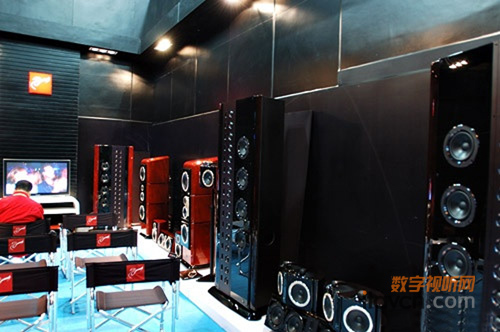 展臺側(cè)面是小型家庭院區(qū),在這里我們可以看到惠威近期的多款新品家影類產(chǎn)品,比如T1000HT,RM600,DIVA 5.3以及最新款的RM300和RM1000影院系統(tǒng)。