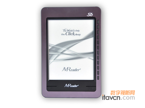 在產品外觀方面,易萬卷MReader S6-5W電子閱讀器外觀尺寸大小為 185*122*9.5mm,重量僅為222克,機身厚度為9.5毫米。此款電子閱讀器提供深邃黑、飄逸紫、太空銀三種顏色供消費者選擇,輔以窄邊框設計,令6寸屏視覺尺寸最大化,搭配3.5mm的耳機孔以及MINI USB 插孔,可以收聽音樂。產品下方設有上、下翻頁鍵,操作起來方便快捷。在產品規格方面,該電子閱讀器采用SAMSUNG S3C2440 ARM9 400MHZ處理器,Linux操作系統,內存為64MB SDRAM,隨機贈送4GB的MincroSD存儲卡,方便用戶存儲海量信息。該產品采用1600mA/3.7V可充電聚合物鋰電池,電源輸入為110V/240V的通用電源適配器DC5V 1A。