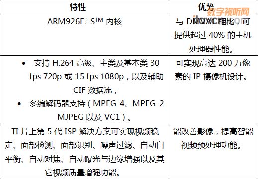 DMVA2 SoC 是繼近期推出支持高達 720p 標準的 DMVA1 視頻處理器之后的產品,不但視頻性能是 DMVA1 視頻處理器的 3 倍,而且還采用了 TI 智能編解碼器技術,可將比特率銳降 5 倍,實現更高的視頻質量與網絡帶寬。DMVA2 不僅可使視頻分析成為 IP 攝像機上的事實特性,同時還可為安防客戶提供更多的設計選擇,是 TI IP 攝像機應用專用產品系列的新一代產品。此外,DMVA2 視頻處理器還與 TI DMVA1、DM365 以及 DM368 達芬奇視頻處理器實現了引腳及軟件兼容,這是保護客戶投資的重要因素。除 DMVA2 芯片本身外,客戶還可通過完整的 IP 攝像機參考設計與帶源代碼的免費 Linux IP 攝像機應用軟件加速產品的上市進程。