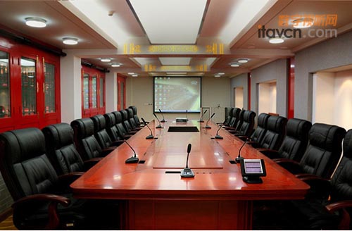 在此次會議室改建項目中,針對該場所多為流動性會議且會議形式和人數經常變化的特點,選用了VEENO無線智能會議系統的VLS4000系列產品,該系列具有搭建迅速,形式靈活,安全可靠的特點。無需布線,接入話筒的數量不受限制,多臺主機可組成更大的系統,可根據需要限制同時開啟話筒的數量,滿足不同形式會議的需要。