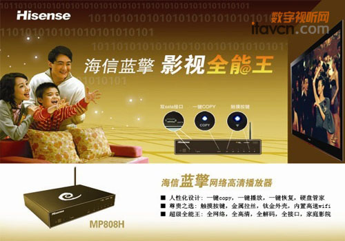 海信藍(lán)擎播放機(jī)五一節(jié)后推出旗艦性新品MP808H,以“影視全能王”的高端配置亮相,堪稱高清網(wǎng)絡(luò)播放器領(lǐng)域中的“新貴”。產(chǎn)品經(jīng)海信精心打造,無(wú)論從軟件設(shè)計(jì)還是硬件配置,此次意在為用戶打造一款功能齊全、使用人性、播放專業(yè)的影視盒子,寄望于帶給用戶尊貴的影視享受。