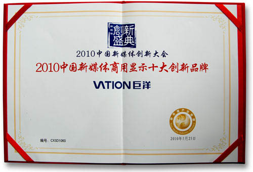 “創新”是一個品牌乃至產業發展的主旋律,新媒體、文化創意等新經濟領域對創新的訴求更加強烈。在與大會同時舉辦的“中國新媒體創新榜”的頒獎盛典上,以技術技術著稱的大屏顯示領導品牌---巨洋被評為2010中國新媒體商用顯示十大創新品牌。