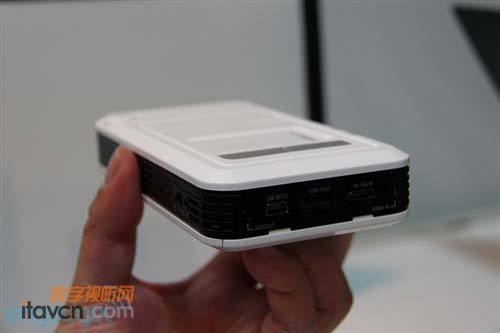 在配置上,這款產(chǎn)品不僅內(nèi)嵌Win CE系統(tǒng),其投影性能也達到了目前微投產(chǎn)品的最高規(guī)格。它采用DLP Pico技術(shù),具備WVGA分辨率(854×480),配合LED光源,最大亮度可達到50流明,能夠投影60英寸左右的畫面。
