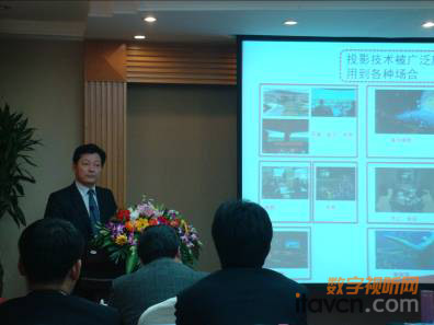 對于投影技術的應用,謝敬先生談到,當今的世界顯示領域,投影技術已經應用非常廣泛,也非常成熟,從軍事、航天、地質、CAD模擬、星球探索、科博館等高尖端科技領域到現在的監控、體育、電教、辦公會議和家庭影院等民用領域,無處不呈現出投影的光影。而對投影光源的趨勢,他也做了詳解,比如:高壓水銀燈的短電弧、LED光源和在電影放映機上被大規模使用的激光光源、激光與LED混合光源。
