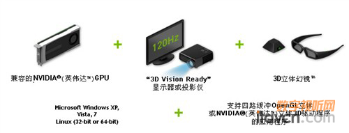 正如電影電視一樣,PC正在從2D走向3D時(shí)代,NVIDIA 3D立體幻鏡技術(shù)集圖形處理器(GPU)、專門的3D眼鏡、軟件以及認(rèn)證的顯示器和投影機(jī)于一身,可在用戶的PC或工作站上實(shí)現(xiàn)令人身臨其境的3D體驗(yàn)。目前,市場(chǎng)中有一些3D投影機(jī)采用NVIDIA 3D立體幻鏡技術(shù),并且經(jīng)過(guò)了NVIDIA官方認(rèn)證。
