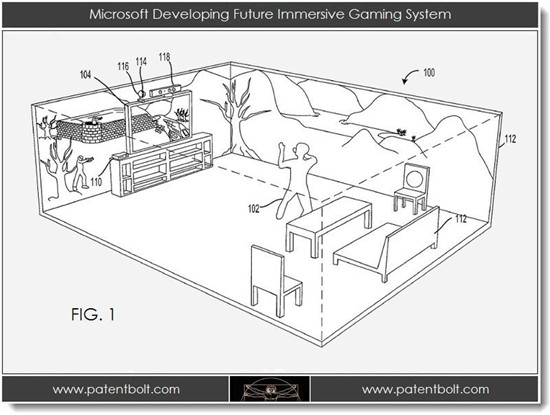 想象一下,在玩第一人稱射擊時,房間四面的墻全部是場景,而人就在游戲中,和現實沒有差別。Kinect會隨時捕捉動作,讓用戶更接近游戲的角色。目前這項技術正在研發中,相關的專利已經開始申請。