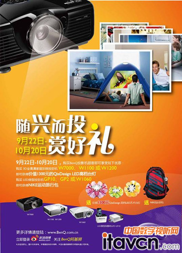小編在此誠意推薦幾款高品質家用投影機,來自全球投影機領導品牌明基BenQ,除畫質出色外,產品本身各具特色,又分為高中低檔不同層次,可滿足不同用戶和家居空間的應用需求。它們包括發燒級3D全高清家庭影院投影機W7000、幸福型全高清W1100與W1200及適合小戶型使用的GP10多功能微投影機。快看看哪種解決方案更對味吧!而且10月20日前購買還可參與優惠促銷活動。