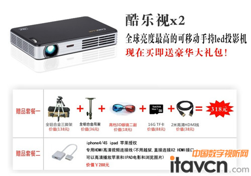 【中國(guó)數(shù)字視聽網(wǎng)訊】酷樂視X2,是一款全球最薄、最低功耗的高清高亮LED微型投影機(jī),該機(jī)采用DLP顯示技術(shù),內(nèi)置電池可幫助實(shí)現(xiàn)即時(shí)播放以及畫面分享,1280*800的寬屏分辨率,讓你的商務(wù)娛樂皆可輕松搞掂。現(xiàn)在,在酷樂視科技淘寶官方商城購(gòu)買,即有大禮相送。