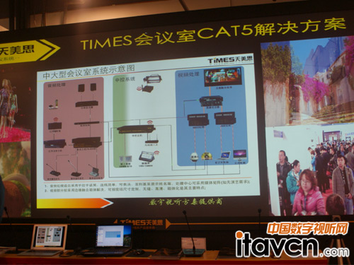 天美思(北京)科技有限公司專注于提供數字高清解決方案。全系列TIMES產品分為:數字CAT5高清信號傳輸切換系統、數字CAT5音頻會議系統、ECS易編程智能中央控制系統等。本次infoCommChina2013展會,天美思重點向觀眾展示了天美思TIMES會議室解決方案。