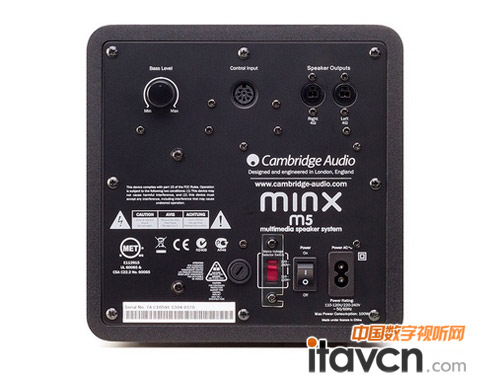 Minx M5的音量控制和電源控制等操作都集中在精致的控制盒上,盒子除了音響輸入接口外,還提供有耳機放大輸出,能為用家提供完整方便的桌面音頻解決方案。
