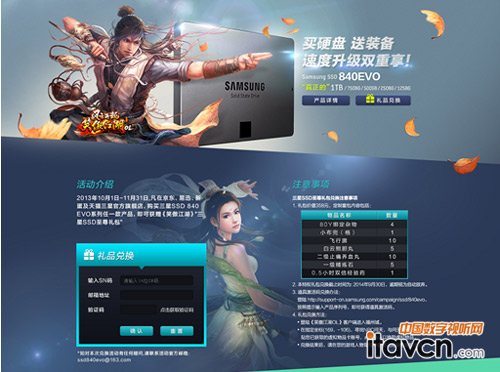 10月1日-11月30日,凡在京東、易迅、新蛋及天貓三星官方旗艦店,購買三星SSD840EVO系列任一款產品,即可獲贈《笑傲江湖》三星SSD至尊禮包",助你傲視群雄,游走江湖無往不利。