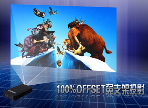 美高G3S卓越微型投影機,采用美高TI的偏軸技術,所投圖像全部出現在所置微型投影機的上方,使用時無需支架。對于隨身攜帶的微型投影機來說十分實用。