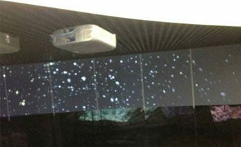 Panasonic寬屏投影機PT-BW530C,可實現5000流明高亮度和10,000:1的高對比度,強光感應技術使以往在明亮房間中難以看到的較暗區域的細節都能清晰再現。通過8臺投影機拼接融合,投射出的高清巨幅畫面栩栩如生地呈現在人們面前。