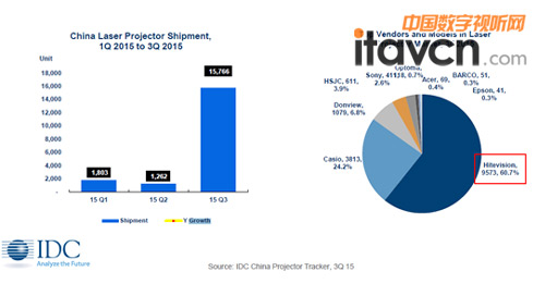 日前,國際知名調(diào)研機構(gòu)IDC針對中國投影機市場的最新銷售調(diào)查數(shù)據(jù)顯示,在激光投影領(lǐng)域,2015年第三季度市場銷量增幅顯著,單季度銷量達到上半年銷量總量的5倍以上,激光投影市場需求首次呈現(xiàn)井噴態(tài)勢。