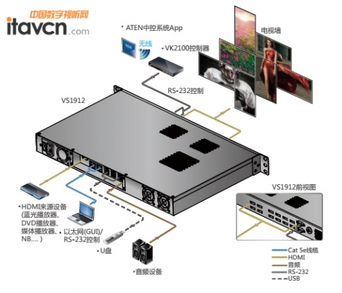 提供雙向RS-232串行端口,可與高階的控制系統整合。
