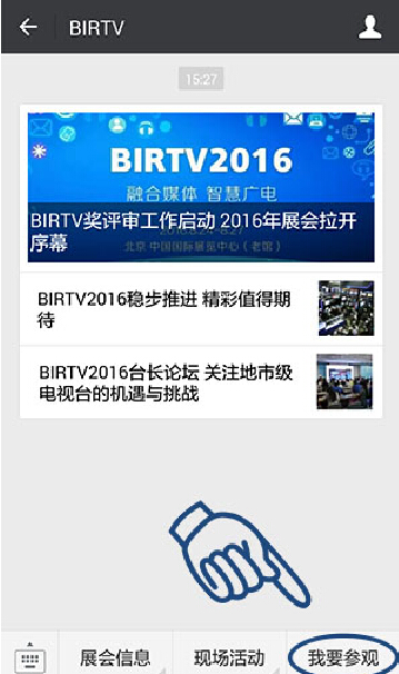 為方便觀眾登記入場,提高參觀體驗,BIRTV2016觀眾登記方式將全部改為“微信預登記”。關注BIRTV官方微信服務號并點擊“我要參觀”,您就可以輕輕松松在手機上完成基本信息登記,開展當日在國展門口自助掃描二維碼打印胸卡,即可入場,省時又省心!