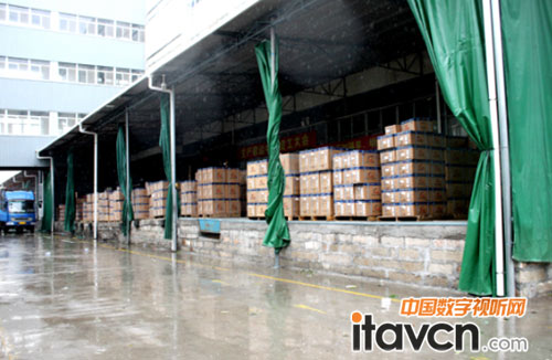 物流平臺上,貨物滿滿,一箱箱整齊擺放的貨物正在等候物流車前來裝貨送。隨著公路搶修正常,強力巨彩已正常發貨。