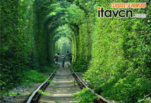 “愛的隧道”位于烏克蘭的Klevan的火車道上,當(dāng)?shù)厝朔Q呼這條隧道為“通往愛的隧道”。每當(dāng)春天萬物復(fù)蘇的時(shí)候,鐵軌旁邊的樹木開始枝繁葉茂,便在軌道上空形成了一個(gè)天然綠色的拱頂。經(jīng)過火車多年的反復(fù)磨礪,鐵軌旁邊的森林就被鑄成了一道漫長而別致的風(fēng)景線,每年無數(shù)年輕的戀人都會(huì)來這里攜愛人之手,漫步在綠色的林蔭道上,見證走過的青春之路。