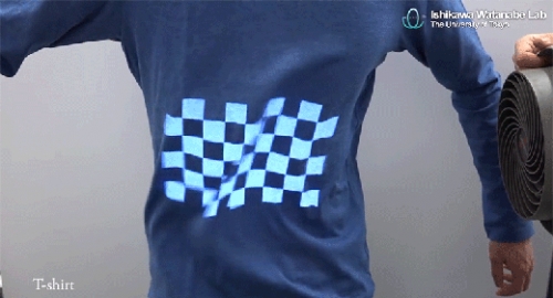 以現有的技術,在不平坦的表面上很難投影出清晰且穩定的影像,因此日本的研究人員不僅僅滿足于投影在類似建筑的平面上,他們開始著手對移動的對象進行投影。