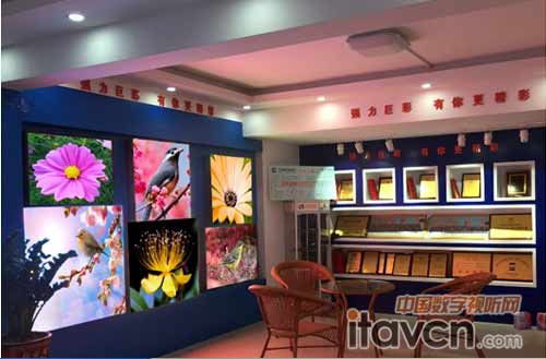 走進浩彩旗艦店,迎面就是一面柱形屏繽紛閃耀,讓整間展廳都熠熠生輝。