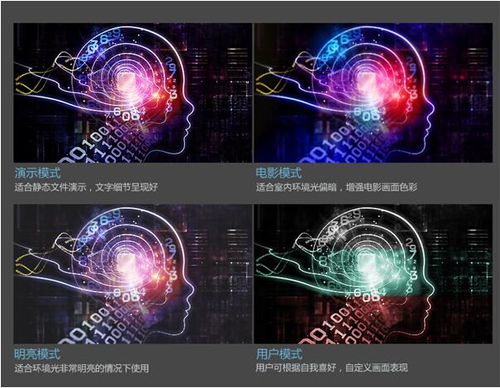 而且,這款明基的無線商用投影機E560還支持16:10寬屏顯示,它對Word文檔、Excel表格、PPT、高清視頻及當下主流APP的UI界面兼容性更高,可以顯示更詳盡豐富的內容,觀看體驗也更為舒適。明亮、演示、電影和自定義四種模式便捷切換,也更利于用戶根據周圍環境和演示內容進行快速調節。