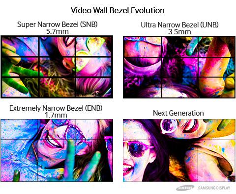 從硬件的角度來看,細分市場內的創新將以打造幾乎無邊框的拼接顯示為中心。雖然拼接顯示安裝方便,但邊框仍是對觀看體驗的一個障礙,并會降低產品效果的視覺沖擊力。作為業界的先驅,三星顯示一直在打造全球最窄邊框的面板。我們仍保持著一項紀錄,那就是2016年發布的僅1.7毫米的刀鋒般超窄邊框。下一代拼接顯示旗艦產品將繼續縮窄邊框,最終目標是部署無邊框的拼接顯示。