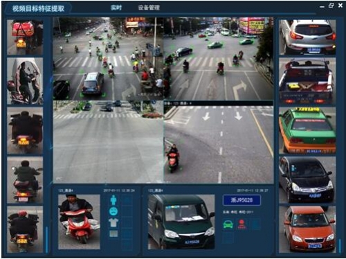 “睿智”服務器把實時視頻進行結構化分析,將復雜場景中的人、機動車、非機動車分離,全方位提取車輛特征,如車型、車系、車身顏色、車牌顏色、車牌號碼識別、主副駕駛是否系安全帶、是否打電話、有無遮陽板、有無年檢標、有無掛墜、有無紙巾盒;針對行人,“睿智”服務器可以多方面分析其相關特征,包括性別、表情、年齡段、服飾特征(上下衣著顏色、眼鏡)、攜帶物特征(背包、打傘)、運動特征等。