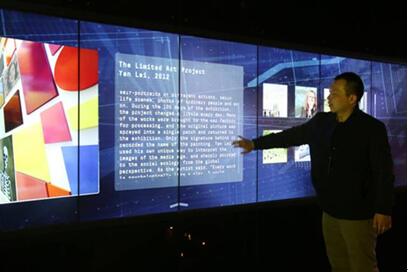 觀眾走到“數字交互展示區”時往往會不由自主的駐足觀看,畢竟這樣的展現形式對于藝術展示來說實屬少見。所有的內容都集中在由Ventuz創建的三維展示場景中,Ventuz平臺能夠靈活處理大量高質量的照片,基于邏輯的工作方式還能迅速調整動畫內容。通過Ventuz平臺與傳感設備的有機結合改變了原本靜止欣賞的模式,觀眾可以通過手勢觸摸自主選擇他們感興趣的內容做展示。這是一個看得見、摸得著、感受得到的藝術展示,新穎的展現形式可以說老少皆宜。
