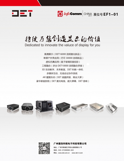 在過去的一年里,DET德浩陸續(xù)推出了自主研發(fā)的激光投影機(jī),亮度包含了2800-10000流明,全部采用激光顯示技術(shù),面向家庭、教育、工程和商用領(lǐng)域。鑒于市場的良好表現(xiàn),將在2017年重磅推出DET高端工程投影機(jī)(16000-20000流明)。
