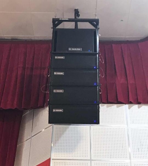 根據招標要求和考慮建聲環境,C-MARK工程師在舞臺兩側固定安裝了雙8”CT有源線陣音箱。該中型線陣由CT2844A有源主音箱和CT1801A有源超重低音結成夢幻組合。內置數字功放模塊,分頻驅動中高音和低音單元,聲音細膩,層次清晰,人聲真實自然,覆蓋范圍廣,頗有身臨其境之感。完善的保護功能(短路保護、過流保護、過溫保護、過欠壓保護、功率壓限、溫度壓限),免去用戶的后顧之憂。