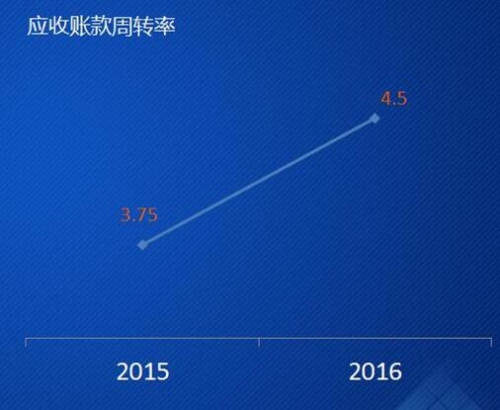 公司營運情況也十分良好,與上年同期相比有大幅提升:2016年經營活動產生的現金流量凈額為1369萬元,2015年為-1529萬元;應收賬款周轉率2016年為4.50,2015年為3.75。