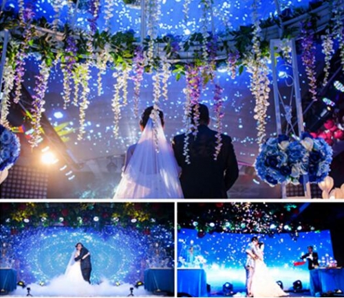 八大宴會(huì)廳采用了主屏、副屏、異形屏、天幕屏、柱形屏、地磚屏等多個(gè)應(yīng)用方案,美輪美奐的顯示效果,讓每一場(chǎng)婚禮都仿佛是光影盛宴,說(shuō)不盡的唯美震撼。伴隨著婚禮的一步步進(jìn)行,各系列LED顯示屏輪番展播新人相片、視頻以及婚禮細(xì)節(jié)等,還能同步直播整個(gè)婚宴現(xiàn)場(chǎng),營(yíng)造出極強(qiáng)的新婚氛圍,也讓到場(chǎng)嘉賓能更加真切的感受到新人的幸福與感動(dòng)。