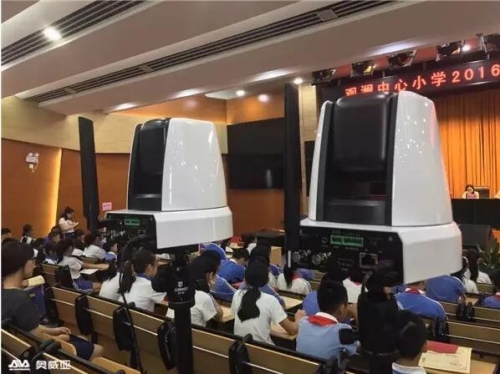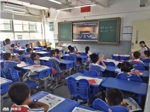 那么,如何讓其他未能到場的學生也能看到這次表彰大會呢?深圳觀瀾中心小學在錄播廠家奧威亞的協助下,利用教育信息化的技術優勢,進行了現場直播。通過奧威亞的移動錄播V6和教學視頻應用云平臺,其他老師和學生在自己的教室就可以看到大會現場的情況。
