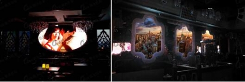 動感的音樂,華美的舞臺,以及恰到好處的空調,再配上強力巨彩異形屏四處閃爍,矩形、菱形、弧形、三角形交相輝映,整間酒吧都在流光溢彩中繽紛璀璨。