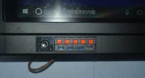 前置接口位于邊框左下方,配備了3個USB 3.0的接口、1個HDMI接口,方便老師外接筆記本、U盤或者移動設備,我們都知道,USB 3.0傳輸速度更快,觀看高清的視頻也不卡頓。接口上方5個橘色按鈕分別是主頁(HOME按鍵)、音量±、節能和綜合設置,可以說包含了日常主要的功能需求。此外,還值得一提的是,下方接口鍵的中間有一個圓形按鈕,這是鴻合為了防止外接設備感染病毒而配備的一鍵恢復系統功能,操作相對便捷,看出鴻合對教學環境的細節考慮周到。