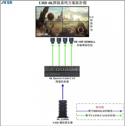 ATER支持4K@60Hz超高清信號的產品里包含一款精巧版的4路拼接處理器4K Quarter-Link-CAT,“功能新穎,性能震撼”是對這款產品的最客觀評價。只需要通過2*2 2K高清拼接屏陣列或LED大屏,便能對4K@60Hz的4:4:4色彩精度的超高清信號進行實時處理,達到像素級同步、零延時顯示、圖像不丟幀或降幀,同時信號傳輸距離可達幾十米。這成為運用常規設備搭載行業領先的視頻處理技術的典范!