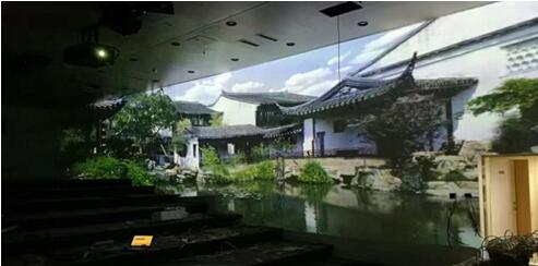 該功能廳引入沉浸式虛擬體驗(yàn)技術(shù),環(huán)境設(shè)計(jì)采用未來(lái)感十足的太空艙設(shè)計(jì),獨(dú)立的投影空間配合現(xiàn)代數(shù)字虛擬技術(shù)和環(huán)繞視聽(tīng)系統(tǒng),極強(qiáng)的代入感讓旅客仿佛身臨其境,打造富有情境的空間體驗(yàn)。項(xiàng)目共引進(jìn)1臺(tái)12,000流明的松下三芯片DLP高清激光工程投影機(jī)PT-SRZ12KC 、9臺(tái)5,400流明的松下單芯片DLP激光高清工程投影機(jī)PT-FRZ570C以及安恒集團(tuán)自主研發(fā)的SECO Show智能多媒體顯示系統(tǒng)。其中,9臺(tái)PT-FRZ570C用來(lái)投影環(huán)形屏幕,PT-SRZ12KC用來(lái)投射7.65m * 4.78m的主屏幕。