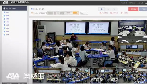 基于奧威亞的課堂遠程互動(MCU)平臺,華中師范大學的智慧教室還能進行遠程互動,滿足校內外“教學、討論、研究”三位一體的多功能教學要求。智慧教室規模大、功能多,如何進行有效的管理也是建設者必須考慮的問題。為此,奧威亞專門提供了集中控制管理系統,可全面預監課堂情況并提供可視化的數據呈現,方便日常監控、督導巡課等工作的開展。