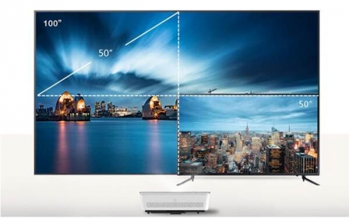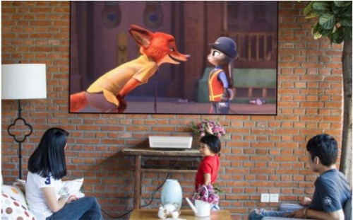 明基激光超投電視提供90吋、100吋和120吋3種大尺寸超薄抗光屏幕以及黑白兩色主機,構(gòu)成多種客廳大屏方案,靈活適應家居環(huán)境。由于輕盈的體型和易安裝性,無需破壞主體墻壁安裝,也一改常見的懸空掛架安裝,剔除累贅配件,近乎與墻壁融為一體。0.233的投射比使得i950L盡可能貼近墻面擺放,不受電視柜寬窄影響;而普通家用短焦投影機需2.5米才能投100吋,不免太過占用空間。