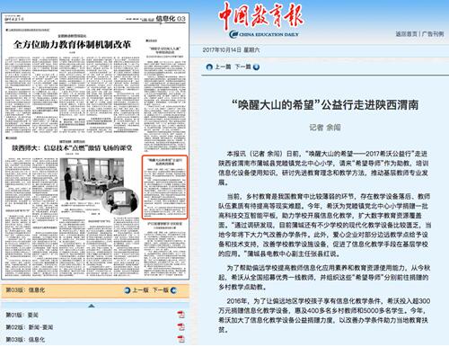 *引自《中國教育報》20171014期第03版《“喚醒大山的希望”公益走進陜西渭南》
