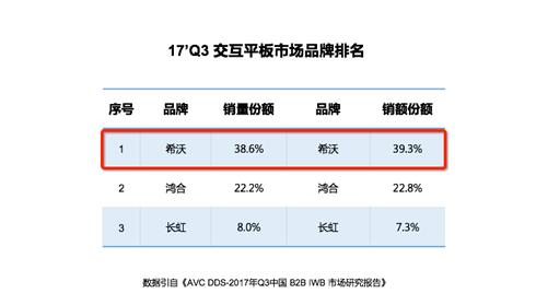 數據引自《AVC DDS-2017年Q3中國 B2B IWB 市場研究報告》