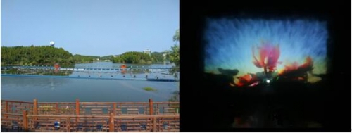 除了展廳等室內展示,八爾湖景區還打造了豐富的戶外活動,在戶外景區投影產品的選擇上,經過多款產品的比對,最終選擇了NEC PH1202HL+旗艦級激光工程投影機。眾所周知,高亮度是戶外景區畫面呈現的重要保障,此次水幕電影配備的2臺NEC PH1202HL+工程投影機,最高可實現12,000流明的畫面亮度和全高清分辨率,顯示效果驚艷。同時運用高級色彩校正功能,保證了亮度和色彩的高度一致和完美呈現。