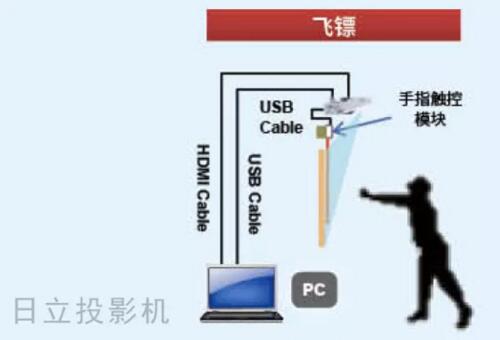 此方案采用日立交互超短焦投影機HCP-TW3010,以及FT-01B(C)手指觸控模塊,再加上交互軟件與PC硬件,通過簡單安裝即可實現。