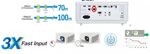 兩款投影機具備HDMI,VGA out和HDBaseT遠距離網絡傳輸接口,方便用戶接駁多路信號和顯示設備,在減少電纜數量的同時,減少使用信號擴展器等附加設備。此外,LS800HD與LS800WU擁有3X Fast Input響應功能,低延遲輸入可降低信號傳輸之間的時間差,方便用戶及時做出反應。智能省電自動開關機搭配多重遙控碼遙控器,避免其它遙控器的干擾,節約能源并延長投影機使用壽命。得益于工業設計,支持7X24小時全天候運行,使產品在多樣化使用環境中穩定運行。
