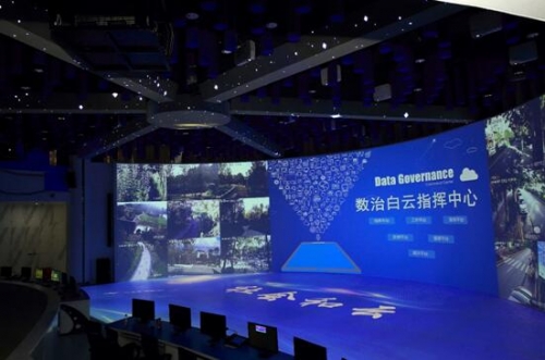 【中國數字視聽網訊】貴陽市白云區塊數據指揮中心匯聚全區生態環境、市容市貌、交通秩序、綜合治安等數據信息,為了能夠實現調度指揮、實時監控、全方位應用展示等工作任務,且還要滿足指揮中心節省占地空間、顯示畫質清晰、多屏顯示等需求,指揮中心整體建設使用了31臺NEC激光工程投影機打造的環幕、地幕結合沉浸式展廳,營造了濃厚的科技創新氛圍。
