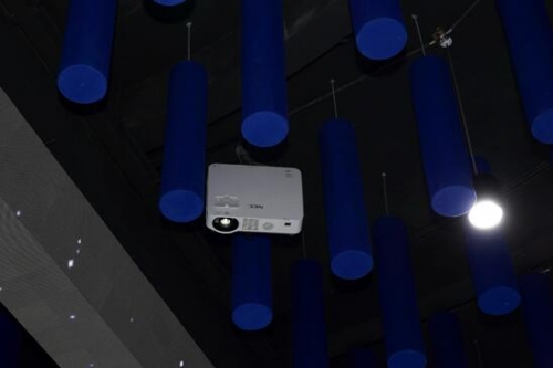 從觀看平臺俯瞰指揮中心全景,NEC工程投影機打造的210平米地幕與巨幅環幕默契相連。在指揮中心環幕上方,采用的28臺NEC P502WL+工程投影機垂直縱向安裝后,可與穹頂上垂下的數十個燈柱相融合,烘托出頗具科技感的氛圍。為了更好地配合廣袤蒼穹場景中投影機的苛刻安裝條件,P502WL+完全凸顯出了其360°旋轉和垂直縱向安裝的優勢。