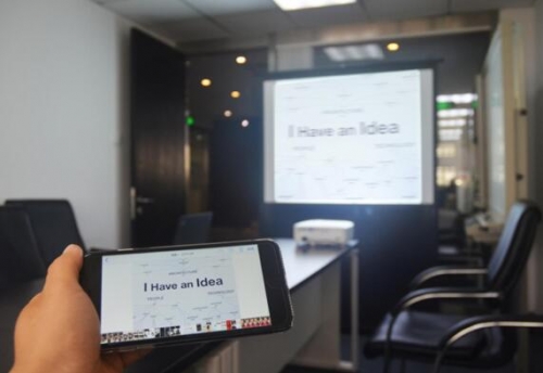 在行政的建議下,老板讓人搬了一臺(tái)明基智能商務(wù)投影機(jī)E610回來(lái)。明基E610自帶智能系統(tǒng),無(wú)需使用連接線,也不需要借助電腦中轉(zhuǎn),就能通過(guò)WiFi無(wú)線連接電腦、平板、手機(jī)等終端設(shè)備,而且還能在iOS、Mac OS X、Android、Windows四大平臺(tái)間自由切換,非常方便且效率,會(huì)議室看起來(lái)也更加整潔。