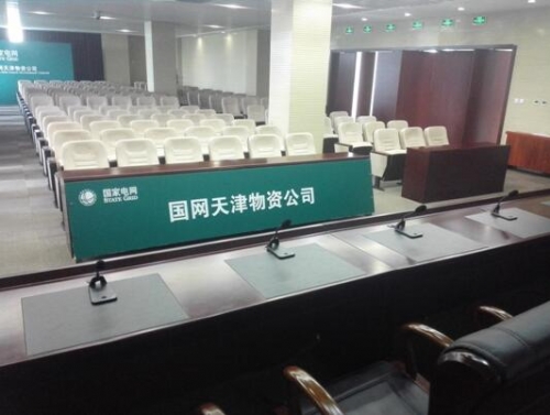 國網物資有限公司報告廳應用了哲聞科技G-8D輕會議。此款會議麥拾音距離遠,人聲飽滿,語言清晰,與傳統會議話筒相比,優勢在于: